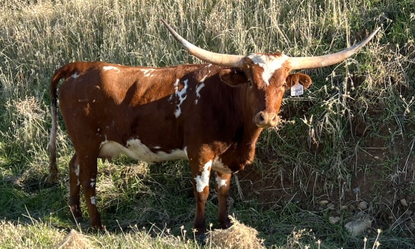 Consigned to the Oregon Trails Sale. VERY WELL MADE FEMALE FROM THE HEART OF MIKE CASEY'S PROGRAM. SHE IS AN EASY KEEPER WITH AN EASY GOING PERSONALITY. HER SIRE, SANTEE CHEX CARRIES THE SAME DNA THAT BUILT COWBOY TUFF CHEX, THE LONGEST HORNED BULL TO DATE. THE BOTTOM SIDE OF HER PEDIGREE IS TIED TO THE FAMED DOHERTY 698 COW WHO PRODUCED PHENOMENON WHOS SEMEN IS STILL $500 A STRAW TODAY. 60" IN HER SECOND YEAR AND HER HORNS ARE STARTING TO ROLL. SHE RAISED HER FIRST BIG CALF AND HAS BEEN EXPOSED TO THE OVER 90" BULL DC ROWDY'S REIGN FOR A SPRING 2024 CALF AND TO THE OVER 90" BULL NDN SCARE CROW FOR A FALL OF 2024 CALF. SUGAH AND HER CALF WILL BE A GREAT ADDITION TO ANYONES PROGRAM WITH THESE GENETICS.